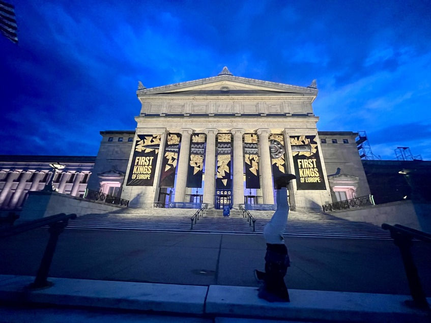 During this time, I visited the University of Illinois campus, where I am currently a visiting scholar. I also celebrated with the first headstand in North America. This was in front of the Field Museum, where my office is based. The museum currently hosts The First King of Europe exhibition, worth a visit before January 2023.